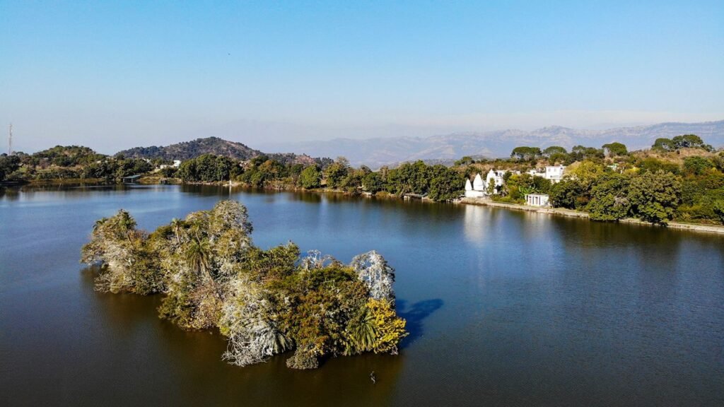 A beautiful lake surrounded by forests, perfect for boating, picnics, and temple visits.